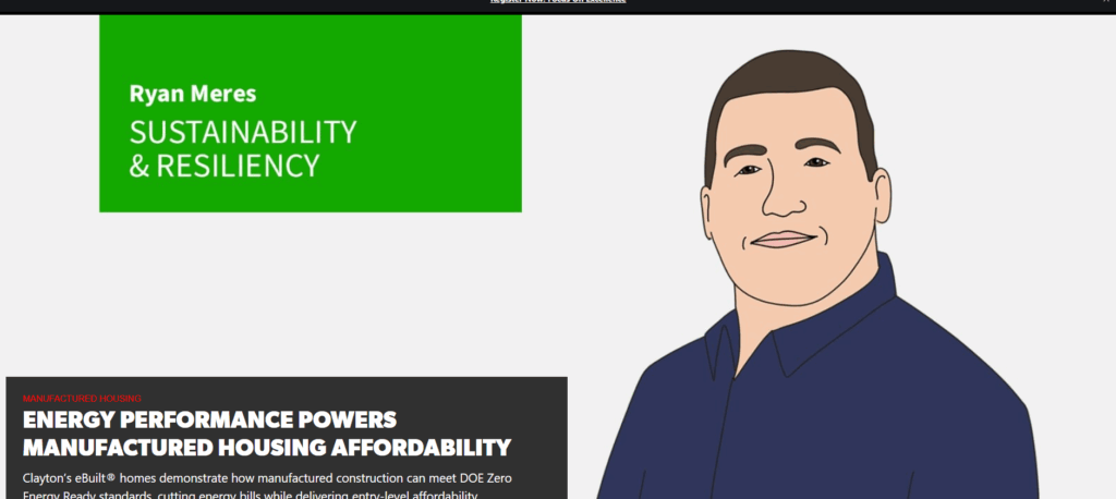 Ryan Meres, RESNET Programs Director, is a frequent contributor to The Builder’s Daily newsletter. In his latest article, “Energy Performance Powers Manufactured Housing Affordability”, Ryan discusses how Clayton’s eBuilt® homes demonstrate how manufactured construction can meet DOE Zero Energy Ready standards, cutting energy bills while delivering entry-level affordability. RESNET staff recently visited Clayton’s manufactured home building facility in Andersonville, TN. The homes are built to Clayton’s eBuilt® standards, featuring efficiency upgrades that help cut energy costs by up to 50%. Beyond Clayton’s standard level of efficiency, these homes also feature upgrades that certify them to the U.S. Department of Energy’s Zero Energy Ready Manufactured Home (ZERMH) program. Currently, manufactured homes do not get a HERS Rating when they are built. However, there is an opportunity to provide HERS Ratings for this home type going forward, which will provide for better transparency and easier comparison of energy efficiency among site-built and manufactured homes. Receiving a HERS Rating may also open this home type to local utility incentive programs that could lead to further efficiency improvements. Read the full article here The Builder’s Daily is a data-driven media company dedicated to serving key stakeholder interests in real estate and construction’s value chain. Through daily insights and our solutions-focused program agenda, they cover single-family for-sale, for-rent, and multifamily market-rate and affordable development, finance, policy, and construction, all from the standpoint of serving to improve access to better decision-making. For more information, visit https://www.thebuildersdaily.com/