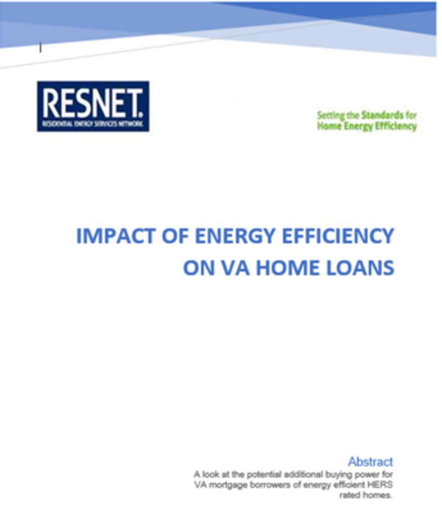 As a benefit to our nation’s veterans, the U.S. Veterans Administration (VA) administers the Veterans Home Loan program to assist those who have served our country with the ability to purchase and finance a home. Who better to be able to afford an energy-efficient home that has lower utility bills and is more comfortable than our veterans who have served us so well? RESNET is advocating that the VA Home Loan program be modified to account for the energy savings of an energy-efficient home in the mortgage loan qualification process. To determine the impact that such a policy would have on the ability for veterans to buy a high energy performance home, RESNET has published the report, “Impact of Energy Efficiency on VA Home Loans”. The report is based upon the analysis conducted by the Florida Solar Energy Center (FSEC) and mortgage finance industry veteran and expert Robert Sahadi of GreenSpace Investment. RESNET commissioned FSEC and Robert Sahadi to determine the potential impact of energy efficiency on Veterans Administration (VA) mortgages. FSEC analyzed the energy savings homes in five diverse metro areas in the U.S. The analysis looked at the following cities: • Dallas, Texas • Denver, Colorado • Detroit, Michigan • Miami, Florida • San Diego, California The study looked at the calculated savings of taking a home that was built in the 1970’s (HERS® Index Score of 130), a home built to the 2009 International Energy Conservation Code (the standard which more than 30 state energy codes are based on) and compared them to a home that achieves a HERS® Index Score of 61 (the average HERS® Index Score of the over 240,000 homes that were HERS® rated in 2019). Mr. Sahadi took the results of the FSEC analysis and looked at the potential mortgage impact implications of a new HERS® rated, energy-efficient home versus an older nonenergy efficient home. The results of this analysis found that a home with a HERS® Index Score of 61 generated significant “additional buying power” from $13,000 to over $24,000 with the same income and downpayment. This additional buying power would allow a VA borrower to gain the energy savings and health benefits of a high energy performance new home with lower housing costs than an older, less efficient home. Robert Sahadi has held senior positions at Fannie Mae, where he was vice president of product development and vice president of mortgage-backed securities. While at Fannie Mae, he oversaw the development of the corporation’s energy-efficient mortgages and green innovations. He has held multiple positions in the federal government, at the U.S. Department of Housing and Urban Development, in the Executive Office of the President, and at the Federal Home Loan Bank Board, where he was chief economist. He has an MBA in finance and an M.A. in economics from the University of Cincinnati. To download the report click on Impact of Energy Efficiency on VA Home Loans.