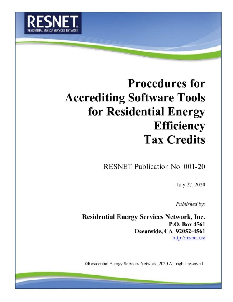 RESNET Board Adopts Revised Procedures for Accredited Software Tools for Residential Energy Efficiency Tax Credits Incorporates Calculation of the Grading the Installation of HVAC Systems The IRS rules for the 45L federal tax credit for energy-efficient homes recognizes RESNET Publication No. 001 “Procedures for Accrediting Software Tools for Residential Energy Efficiency Tax Credits”. The U.S. Department of Energy (DOE) has been using the publication for approving software programs for the tax credit and posting their approved programs on the DOE website. The RESNET Board has adopted an amended version of the publication, RESNET Publication No. 001-20. The amended publication includes the calculations of the new ANSI RESNET/ACCA Standard 310 “Standard for Grading the Installation of HVAC Systems” in calculating compliance to the tax credit. The publication will credit HVAC systems that have been rated through the new ANSI standard in calculating compliance to the tax credit. To download the revised publication go to RESNET Publication No. 001-20 The revised publication involved the vetting of DOE, the National Renewable Energy Laboratory (NREL), the RESNET Standards Development Committee 300’s Calculations Subcommittee and the RESNET Board of Directors Software Consistency Committee. RESNET Executive Director Steve Baden commented, “The RESNET Board’s action will help ensure that the HVAC systems that are designed and installed properly receive credit for the federal tax credit. This represents a win for builders and families that are purchasing their homes. A special recognition is due to Philip Fairey of the Florida Solar Energy Center, Eric Werling of DOE, Dave Roberts of NREL, and Jamie Lyons and Mike Moore of Newport Partners. Their assistance was invaluable in the revision of the publication.” The revised publication has been forwarded to DOE for their adoption.