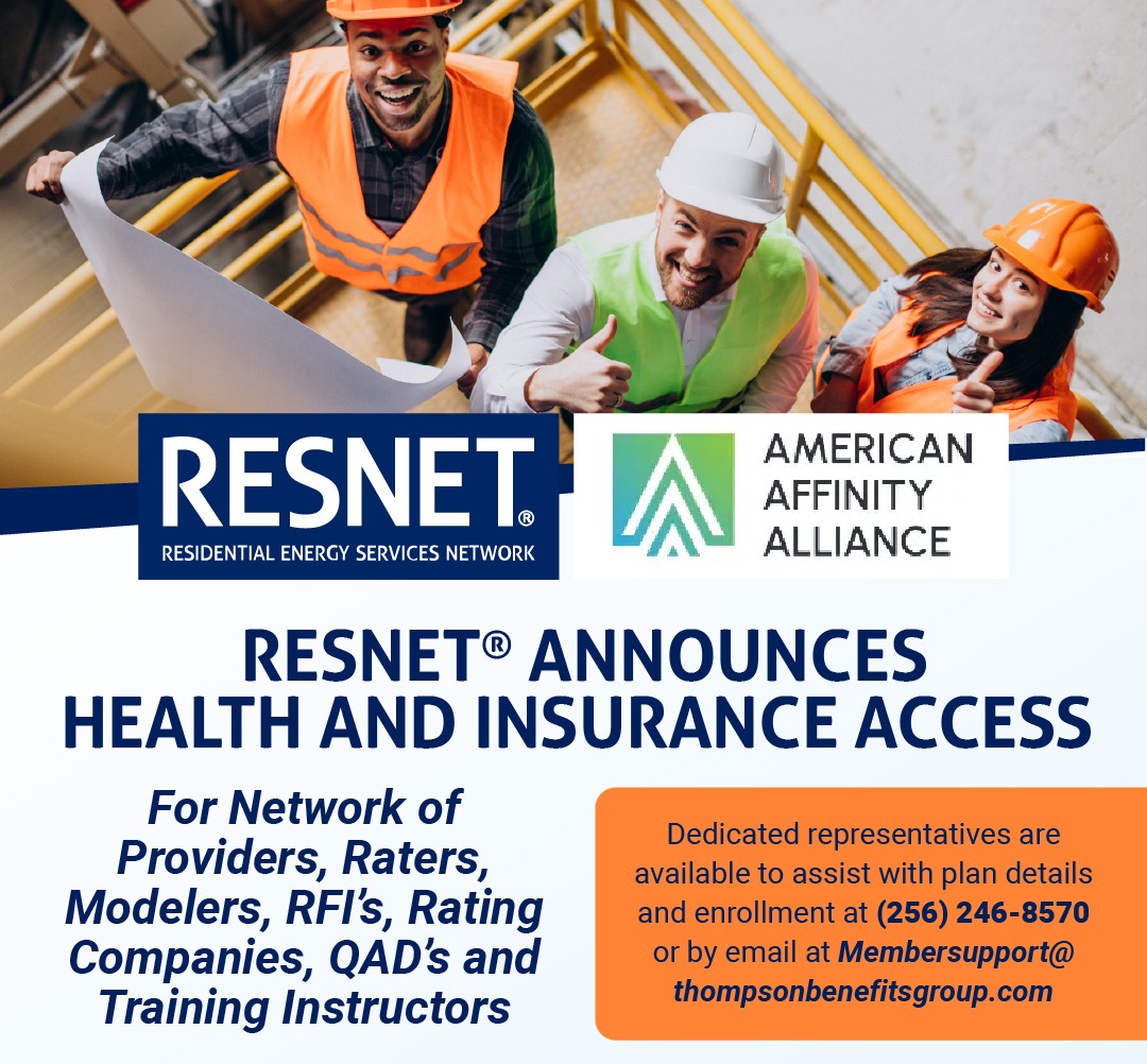 Thursday, November 13 at 2 PM ET https://attendee.gotowebinar.com/register/7326094805413910874 Now, more than ever, with insurance costs expected to rise in 2026, new options are needed. With that in mind, RESNET recently launched new health and insurance access for providers, raters, modelers, Rating Field Inspectors (RFIs), rating companies, Quality Assurance Designees (QADs), and training instructors via a partnership with American Affinity Alliance. Join us as American Affinity Alliance representatives present the available suite of health-related services and insurance products, including individual and family health plans, solutions for small businesses, and supplemental and ancillary coverage options. For more information on the products available, visit https://www.americanaffinityalliance.org/RESNET/ Register here
